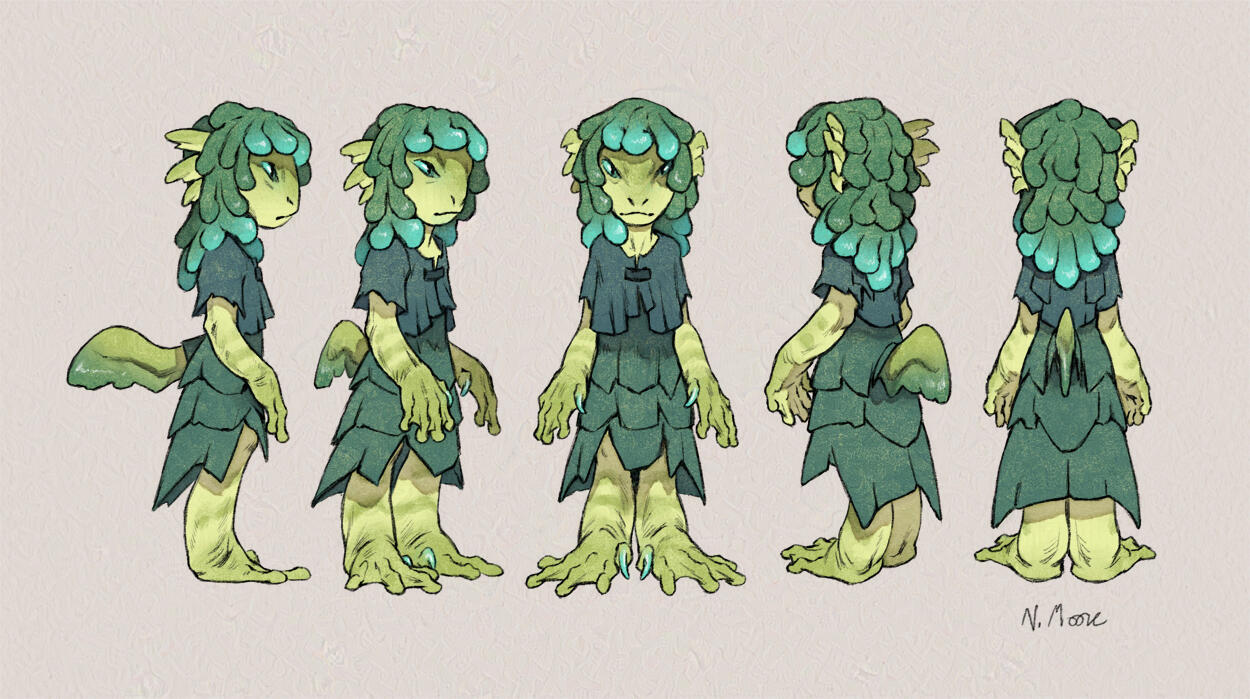 A young amphibious swamp witch. A strange, moody little creature protecting her home with her magic.