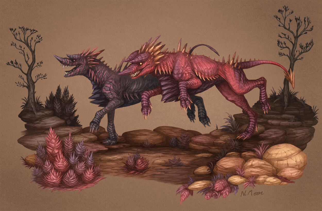 A reptile/therapsid creature resembling a canine due to convergent evolution.